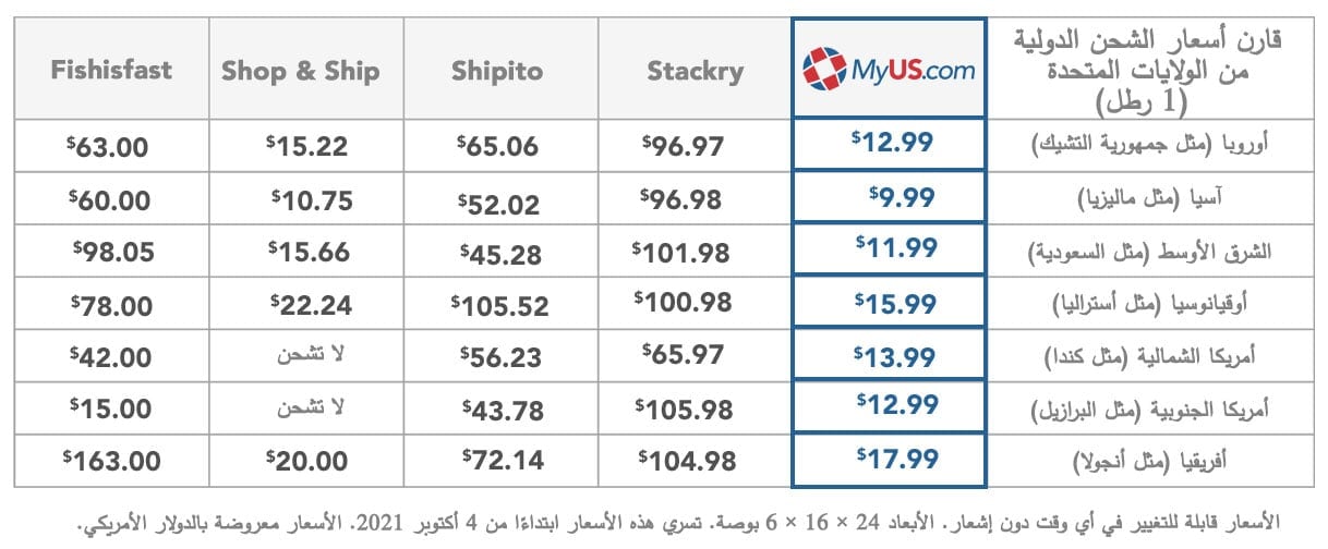 MyUS ستشحن مشترياتك إليك في أي مكان في العالم خلال 2-4 أيام